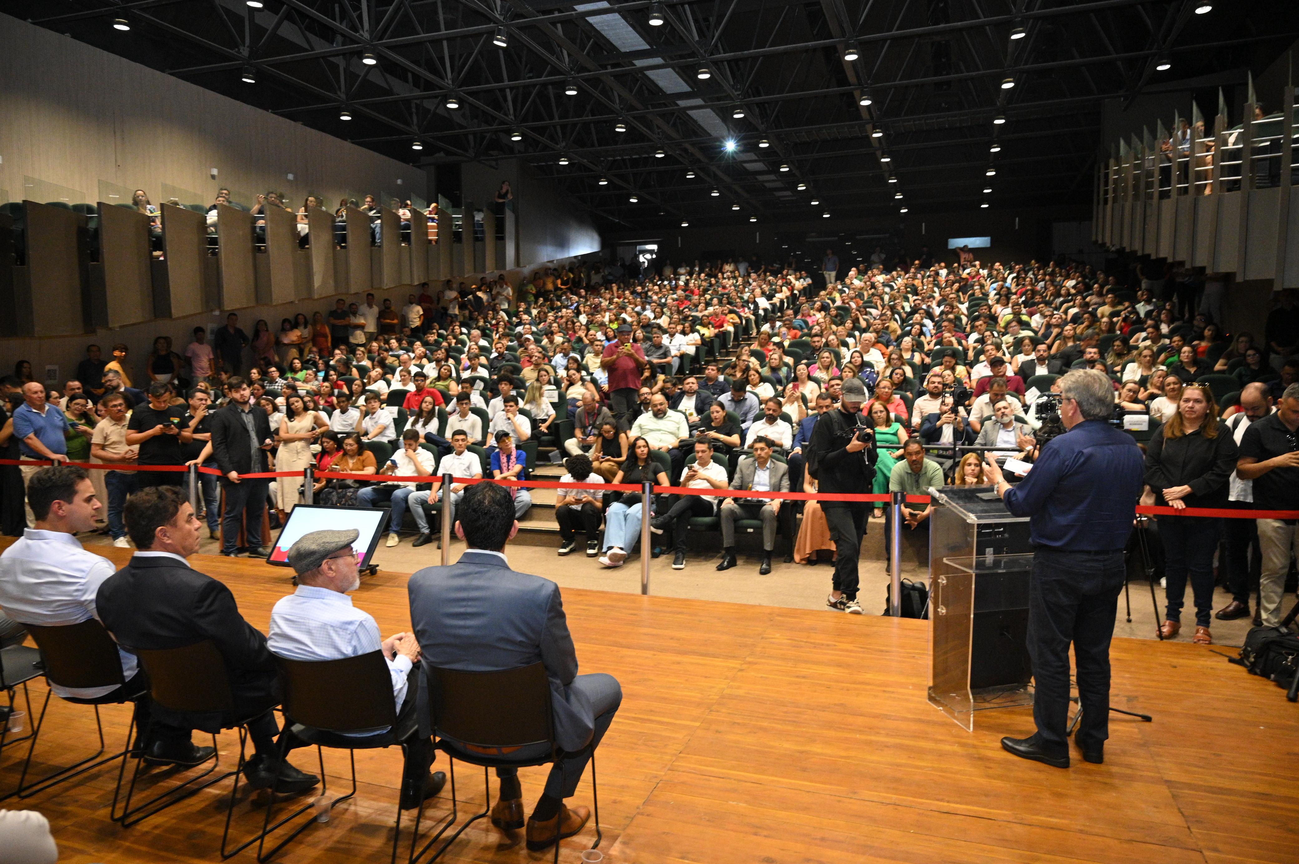 Durante o evento, o secretário de Estado da Educação, Wilson Filho, apresentou as iniciativas desenvolvidas pela Secretaria que possibilitaram grandes resultados pedagógicos no último ano letivo, como por exemplo o combate à evasão escolar. “Hoje é um dia para celebrar o reconhecimento a quem faz a educação chegar com excelência aos nossos estudantes. O ano de 2025 foi de inúmeras conquistas para e o estudante da escola pública da rede estadual percebeu o potencial dos programas, da infraestrutura e do trabalho da Secretaria, escolhendo permanecer em sala de aula. Por exemplo, no Ensino Médio, que corresponde a 80% da nossa rede, registramos um abandono escolar de apenas 2,1%. Isso é histórico e mostra que iniciativas como o Passe Livre Estudantil, o Amanhã Digital, o Conexão Mundo, Primeira Chance, deram certo. Com aluno em sala, crescem nossos índices de aprendizagem”, destacou.