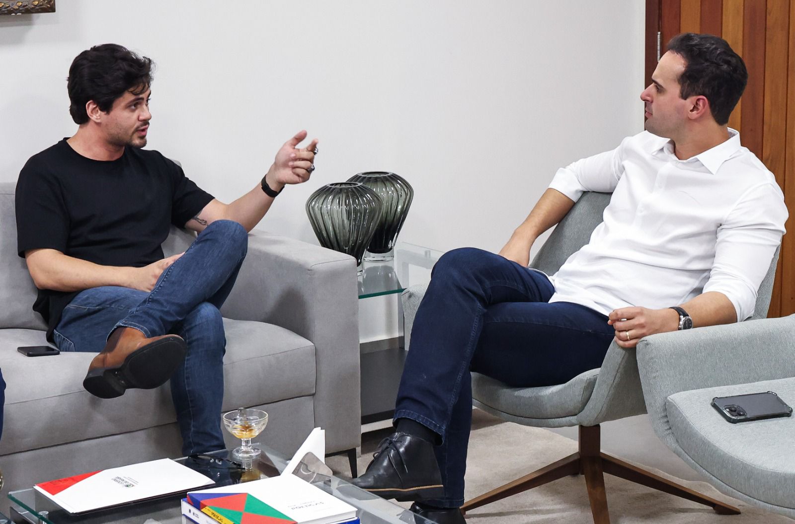 O governador Lucas Ribeiro anunciou, nesta sexta-feira (17), a inauguração do teatro do Centro de Convenções de Campina Grande para o dia 1º de julho, dentro do período de forte movimentação na cidade do Maior São João do Mundo. O gestor também anunciou o encaminhamento, à Assembleia Legislativa da Paraíba, de um projeto de lei que propõe denominar o equipamento com o nome do humorista Shaolin, medida que ainda será apreciada e votada pelos parlamentares. A iniciativa foi revelada durante encontro com o ator e comediante Lucas Veloso, filho de Shaolin.